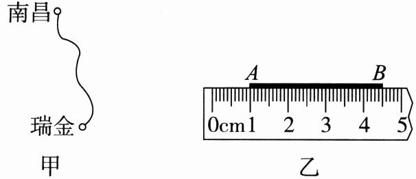 11.某地图软件上的南昌到瑞金的一段公路线如图甲所示,小明使一条无弹性细线与此图上的公路线重叠,并在细线上将重叠部分的两端做标记,拉直后两标记间的长如图乙中线段AB所示。