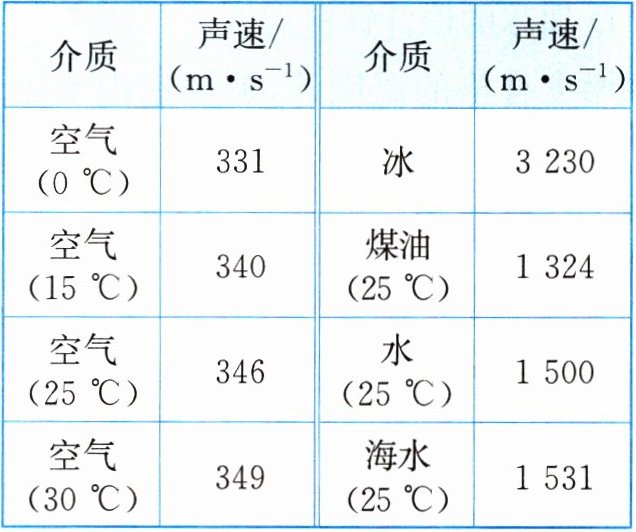 |空气(30 ℃)|349|海水(25 ℃)|1531|