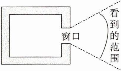 光沿直线传播,从小明能看到的范围的两端分别向窗口的两上端引直线,这两条直线就是光线,它们相交的点就是眼睛的位置,如下图所示,图略。