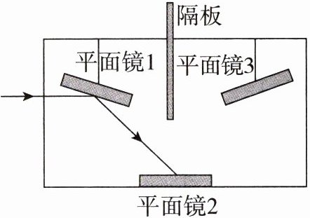 11.科学晚会中两位老师表演了“切不断的光”。道具暗箱里的结构如图所示,请画出光经平面镜2和平面镜3反射后沿原来方向射出的光路图。