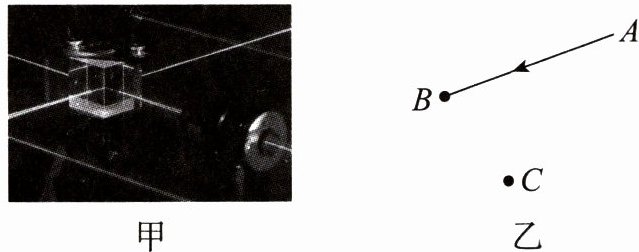 8.在科学家们的不懈努力下,我国的量子通信技术领跑全球。甲图为量子光学实验的场景,实验中一束激光要被多次反射。某次反射中从A处来的激光被B处的平面镜反射至C处,请你在乙图中把光路补充完整并画出过B点放置的平面镜。