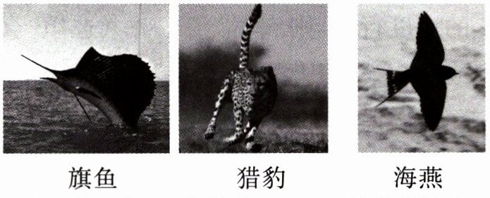 解:旗鱼速度:$108\ km/h=108×\frac{1000\ m}{3600\ s}=30\ m/s$