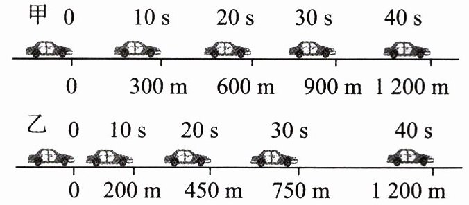 A. 甲车在相同时间内通过路程相等(10s内均为300m),做匀速直线运动;乙车10s内路程分别为200m、250m、300m、450m,不相等,不是匀速直线运动,A错误。