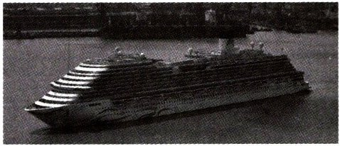 解:成年游客正常步速约为 $ v = 1.1 \, m/s $(合理范围 $ 1 \, m/s \sim 1.5 \, m/s $),邮轮长度 $ s = 323.6 \, m $。