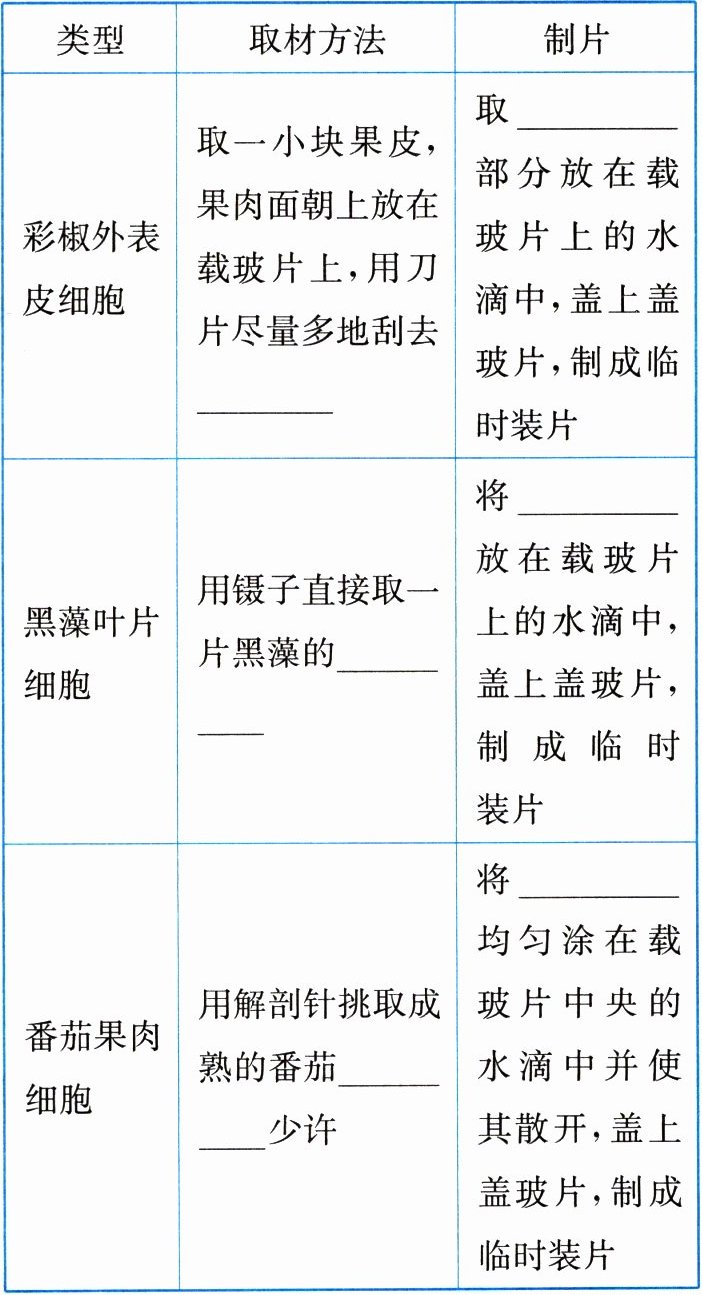 2.尝试制作其他植物细胞临时装片