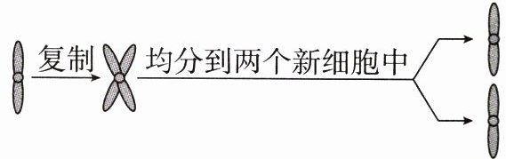 成完全相同的两份,分别进入两个新细胞。(3)结果:两个新细胞的染色体形态和数目