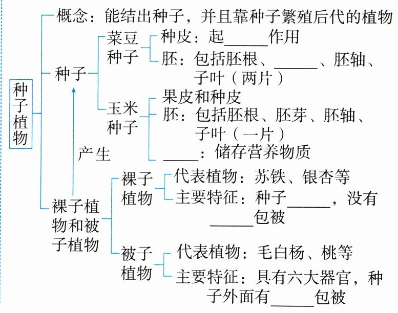 子叶的植物,如玉米。3.种子植物更能适应陆地环境的原因:一是种子植物能够产生