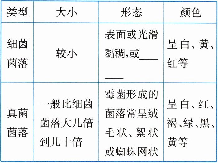 。(2)[对比归纳]细菌菌落和真菌菌落的特点