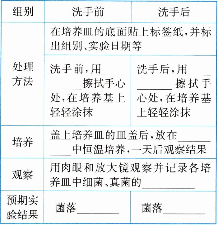 (2)作出假设:洗手前手上存在大量细菌和真菌,洗手后,