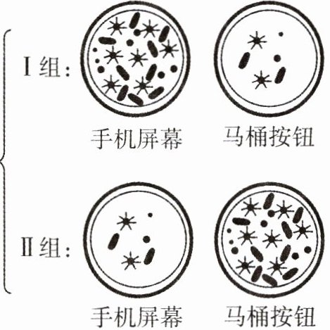 7.在我们的日常生活中,越来越多的人患上“手机依赖症”。由于人的手经常接触手机,手机表面温暖、潮湿,非常适合细菌的生长。为判断“手机屏幕比马桶按钮单位面积上的细菌数量多”的真假,某生物学小组的同学进行了相关实验,部分过程及结果如下图所示。请分析回答下列问题。