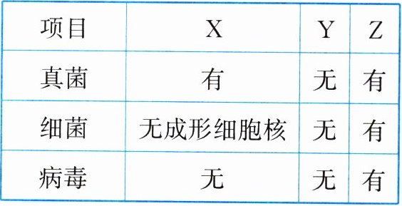 8.(逻辑推理)小唐对细菌、真菌、病毒进行了列表比较,有同学对其表格进行了解读,不合理的是(