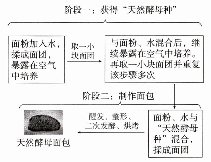 1.天然酵母面包是使用含有大量酵母菌和乳酸菌的“天然酵母种”制作而成的,制作流程如下图所示。天然酵母面包因其风味独特而受到面包爱好者的青睐。