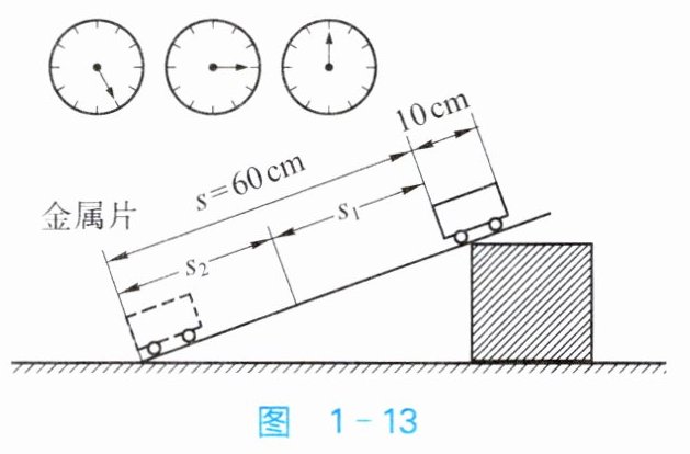 。如图1-13所示,秒表每格为1 s,则小车通过全程的平均速度是0.12