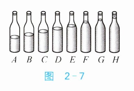 7. 如图2-7所示,在8个相同的水瓶中装入质量不同的水,水面的高度不相等。