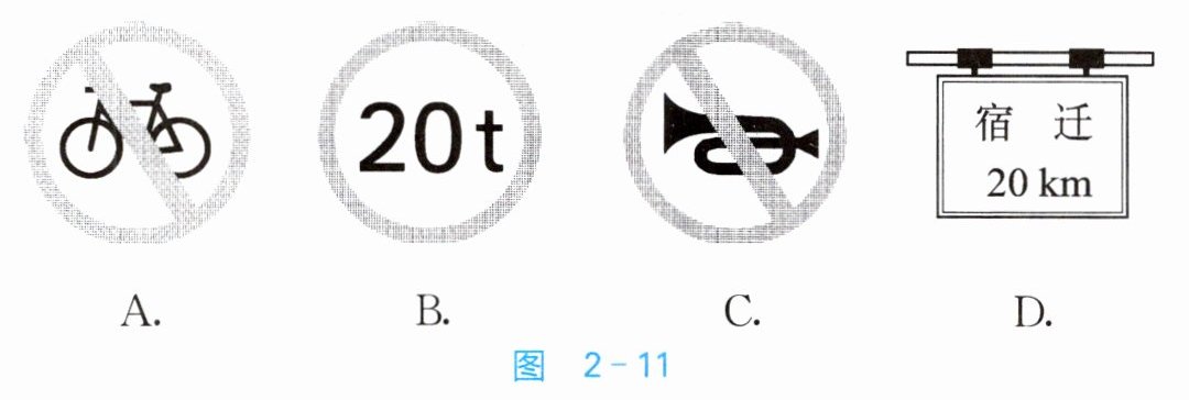 3. 如图2-11所示,在下面几幅交通标志牌中,能明显表示用于环境保护的是(