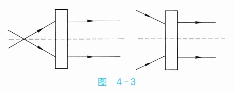 3. 根据光的折射情况,在图 4-3 所示的方框内填上适当的透镜。