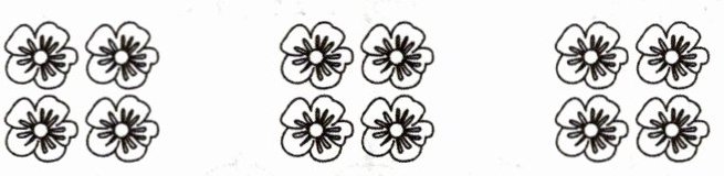 2. (1)一共有( )朵花,每( )朵为一份,平均分成了( )份。