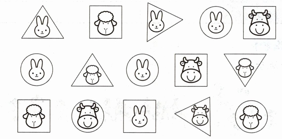 2.(1)形状 三角形 圆 正方形 个数 5 5 5 (2)动物种类