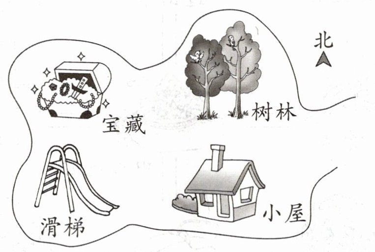 1. 同学们在公园里玩寻宝游戏,平平先从小屋处向( )面走到滑梯处,再从滑梯处向( )面走,就能找到宝藏。