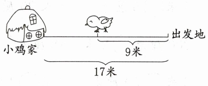 6. 一条小路长 17 米,小鸡已经走了 9 米,它还要走多少米才能到家?