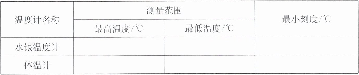 |温度计名称|测量范围|最小刻度/℃|