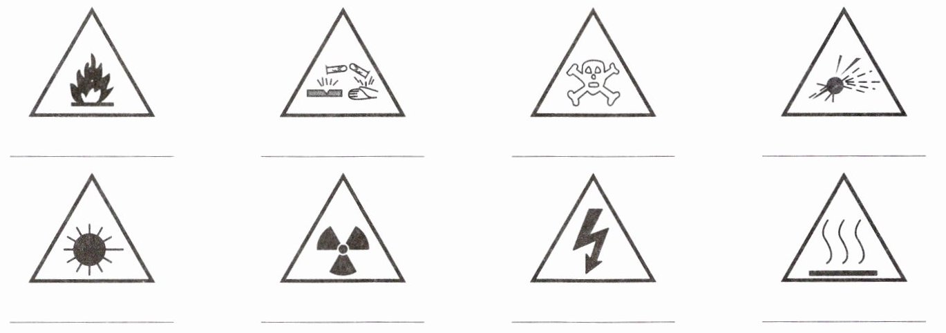 易燃;易燃气体;剧毒品;爆炸品;强光;放射性物质;高压;热源