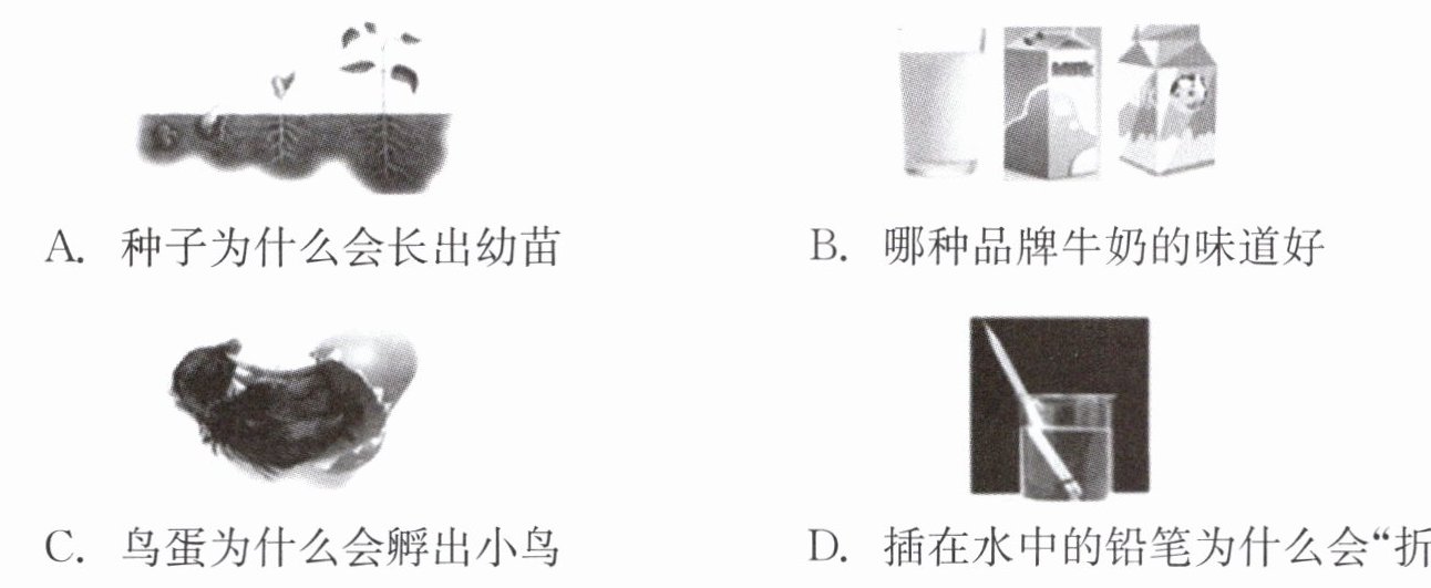 B选项:“哪种品牌牛奶的味道好”,这个问题涉及到个人口味偏好和主观评价,不同的人可能有不同的答案,无法通过科学实验来得出一个普遍适用的结论,故B选项不属于科学问题。