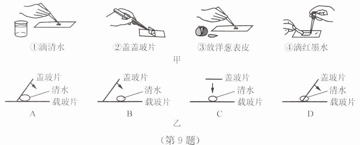 (填序号)。(2)盖上盖玻片的操作方法如图乙所示,其中正确的是______
