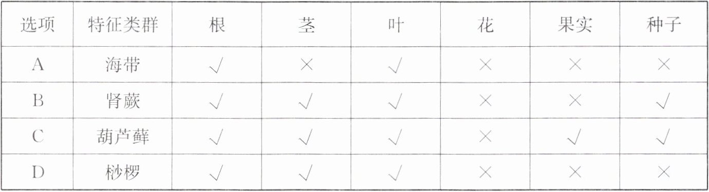 |选项|特征类群|根|茎|叶|花|果实|种子|