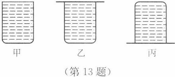 13. 如图所示,先在杯子中装满水(如图甲),再盖上硬纸板(如图乙),然后用手压着硬纸板将杯子倒置过来。放手后(如图丙),你猜测将会发生什么现象? 动手实验后,你又看到了什么现象? 对此你产生了什么疑问? 请记录在下面的横线上。