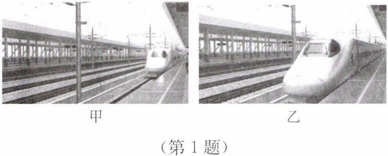 1. 一次外出旅游时,小金拍下了甲、乙两张照片。你觉得这列高速列车有没有发生运动?你的判断依据是什么?