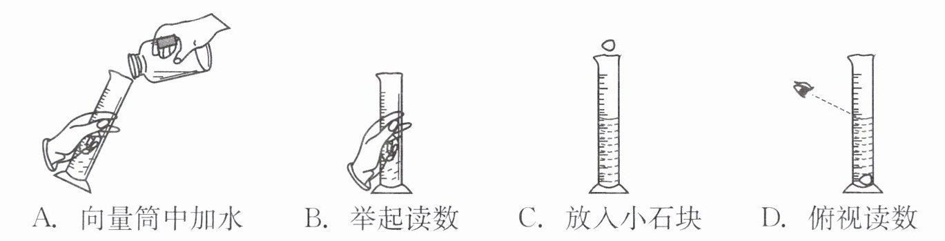 4. 下面是用量筒测量小石块体积的四个步骤,其中操作正确的是(