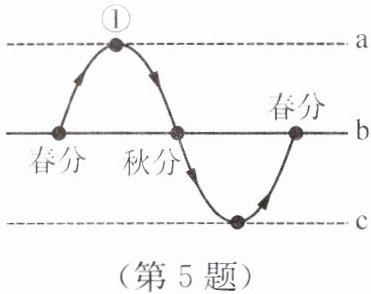 5. 如图所示为太阳直射点运动的示意图,其中a、b、c分别表示三条纬线。据图分析可知(
