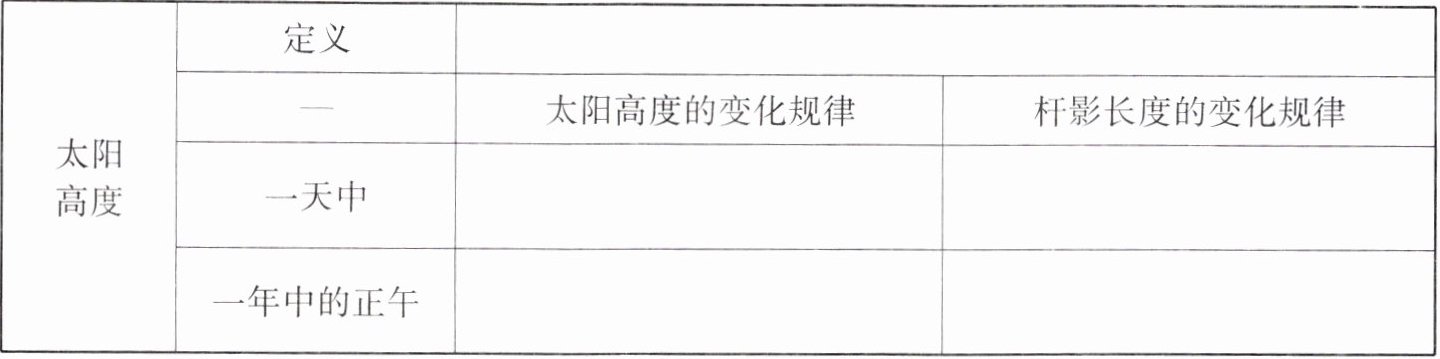 | | | 太阳高度的变化规律 | 杆影长度的变化规律 |