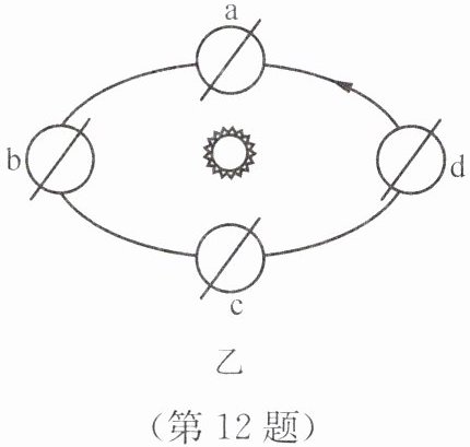 (1)当阳光照射地球的情况如图甲所示时,地球运行在图乙中的