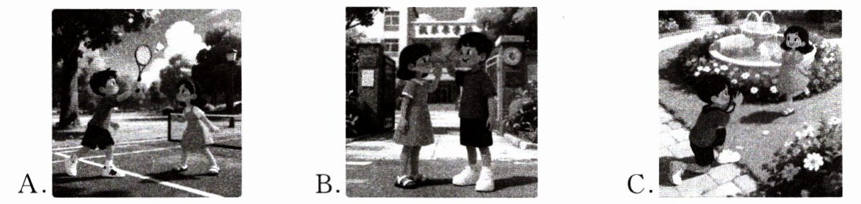 )12. Which picture probably(可能) shows the scene(场景) of this conversation?