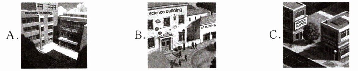 A. Next to the library. B. In front of the gym. C. Behind the classroom building. (