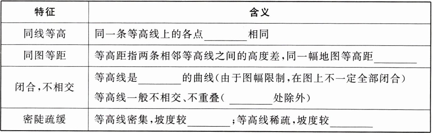 |闭合,不相交|等高线是 的曲线(由于图幅限制,在图上不一定全部闭合)等高线一般不相交、不重叠( 处除外)|