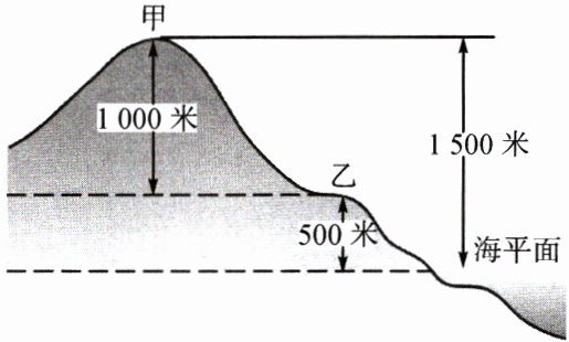 甲地的海拔为 米,乙地的海拔为 米。甲、乙两地的相对高度为 米。