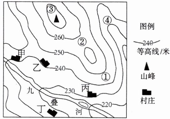 小其的家乡在江南一个美丽的村庄,村庄坐落在小山坡下,背北向南而建,村前清澈见底的九叠河,绕过河心的沙洲,不知疲倦地流淌着……右边是村庄所在地区等高线地形图。