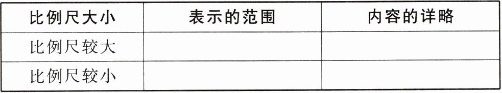 | 比例尺大小 | 表示的范围 | 内容的详略 |