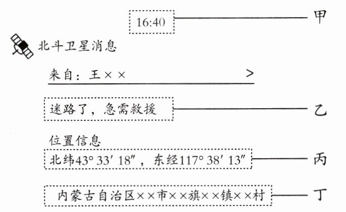 2.图中的丙信息,体现了北斗卫星导航系统的( )。