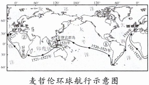 1519-1522年,麦哲伦率领船队从西班牙出发,实现了人类环绕地球一周的航行,首次证明了地球是一个球体。