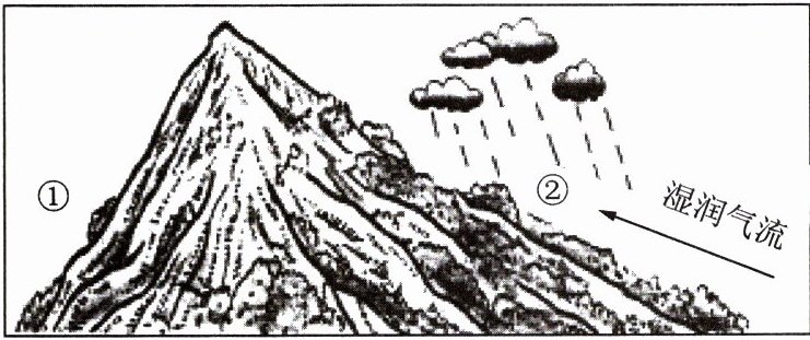 6.下图中②坡降水量多于①坡降水量的影响因素是( )。
