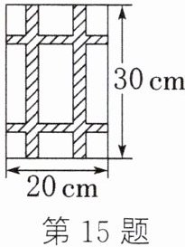 15. 如图,要设计一幅长30 cm、宽20 cm的矩形图案,其中有两横两竖的条纹,横、竖条纹的宽度之比为2:3.如果要使得所有条纹所占面积为原矩形图案面积的三分之一,那么应如何设计条纹的宽度?