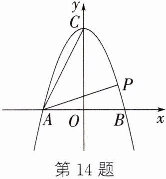14. 如图,抛物线$y= ax^{2}+4与x轴交于A,B$两点(点$A在点B$的左侧),与$y轴交于点C$,且$AB= 4$.
