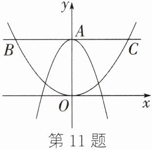 11. 如图,在平面直角坐标系中,抛物线$y= ax^{2}+4与y轴交于点A$,过点$A与x轴平行的直线交抛物线y= \frac{1}{4}x^{2}于点B,C$,则$BC$的长为______.