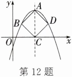 12. 如图,抛物线$y= a(x-h)^2+k(a<0,k>0)的顶点为A$,对称轴与$x轴交于点C$,当以$AC为对角线的正方形ABCD的另外两个顶点B$,$D$恰好在抛物线上时,我们把这样的抛物线称为“美丽抛物线”.正方形$ABCD$为它的内接正方形.