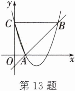 13. 如图,二次函数$y= (x-2)^2+m的图象与y轴交于点C$,$B是点C$关于该二次函数图象的对称轴对称的点.已知一次函数$y= kx+b(k≠0)的图象经过该二次函数图象上的点A(1,0)及点B$.