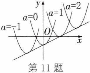 11. 已知二次函数$y= (x-2a)^2+a-1$($a$为常数),当$a$取不同的值时,其图象构成一个“抛物线系”.如图所示为当$a= -1$,$a= 0$,$a= 1$,$a= 2$时二次函数的图象,它们的顶点在同一条直线上,则这条直线对应的函数解析式为$y= $______.
